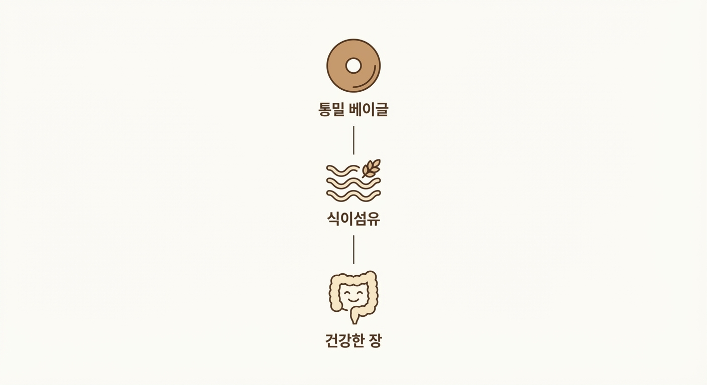 통밀 베이글 다이어트가 주목받는 이유는 바로 ‘식이섬유’와 ‘포만감’입니다. 통밀 베이글은 정제 밀가루 대신 통밀을 사용해 혈당 상승을 완만하게 하고, 식이섬유가 풍부해 포만감을 오래 유지시켜줍니다. 실제로 더쿠에서는 “통밀 베이글로 바꾼 뒤 과식이 줄었다”는 후기가 많았습니다. 다이어트에 적합한 베이글을 고를 때는 통밀, 저당, 저염 제품을 우선적으로 선택하고, 토핑도 단백질(닭가슴살, 계란)과 채소 위주로 구성하는 것이 좋습니다.