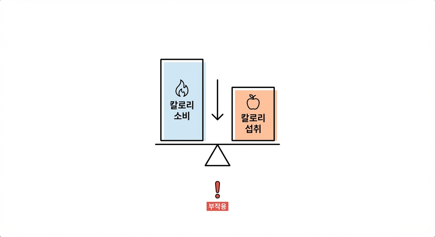 칼로리 제한 다이어트란, 섭취하는 칼로리보다 소비하는 칼로리를 늘려 체중을 감량하는 원리입니다. 덴마크 다이어트 식단은 하루 600~800kcal 수준으로 극단적으로 낮은 칼로리를 제공합니다. 살 1kg을 빼려면 약 7,700kcal를 줄여야 하므로, 단기간에 체중이 빠지는 것은 사실입니다. 하지만 이렇게 급격한 칼로리 제한은 근육 손실, 기초대사량 저하, 요요현상 등 부작용을 유발할 수 있습니다. 실제로 건강한 다이어트는 하루 500kcal 내외로 줄여 1주일에 0.51kg 감량을 권장합니다.