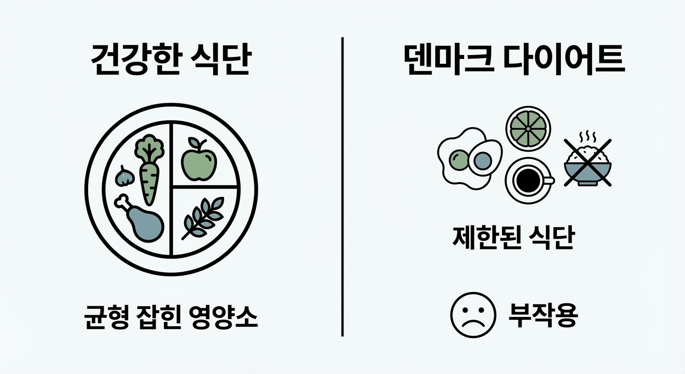 덴마크 다이어트와 건강한 다이어트의 가장 큰 차이점은 무엇인가요?