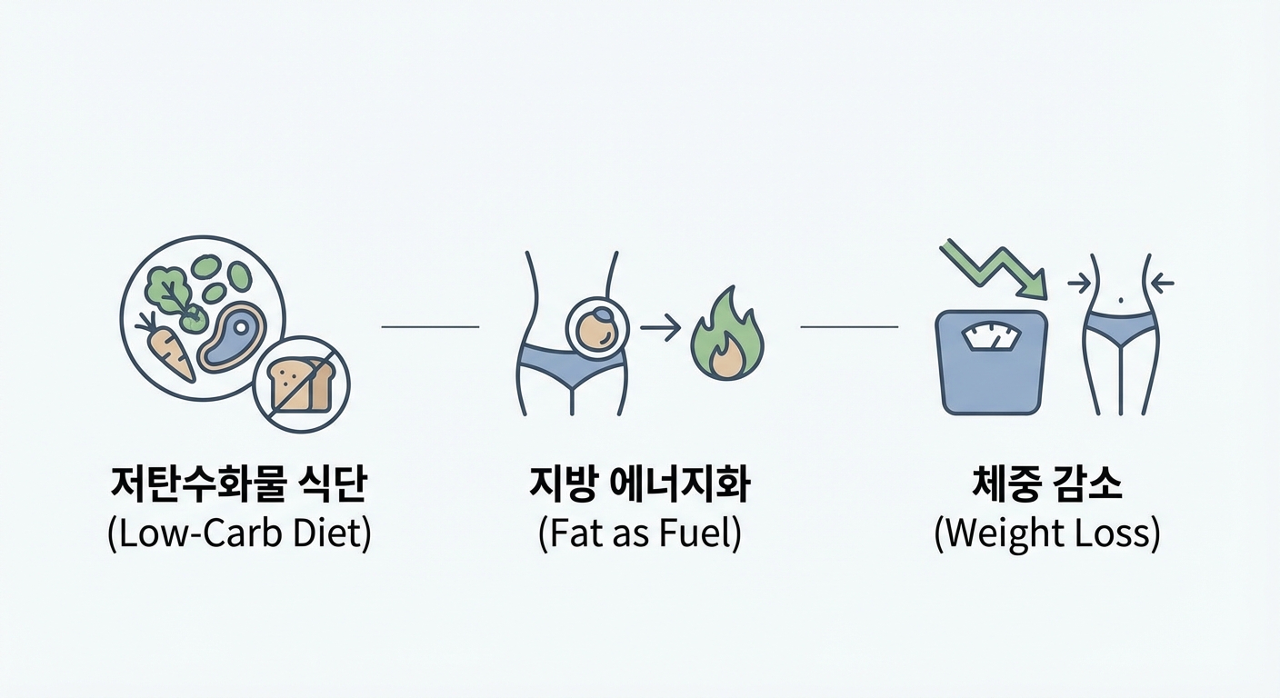 탄수화물 섭취를 극도로 줄이면 몸은 에너지원으로 저장된 지방과 단백질을 사용하게 됩니다. 이 과정에서 체내 글리코겐과 수분이 빠르게 소모되면서 단기간 체중 감소가 나타납니다.